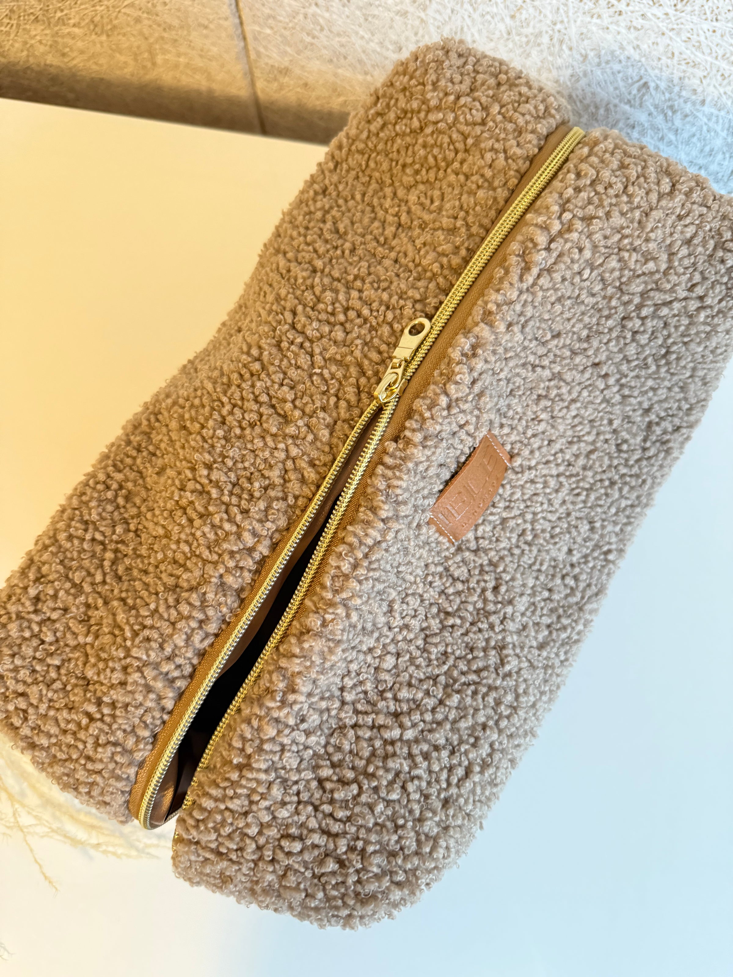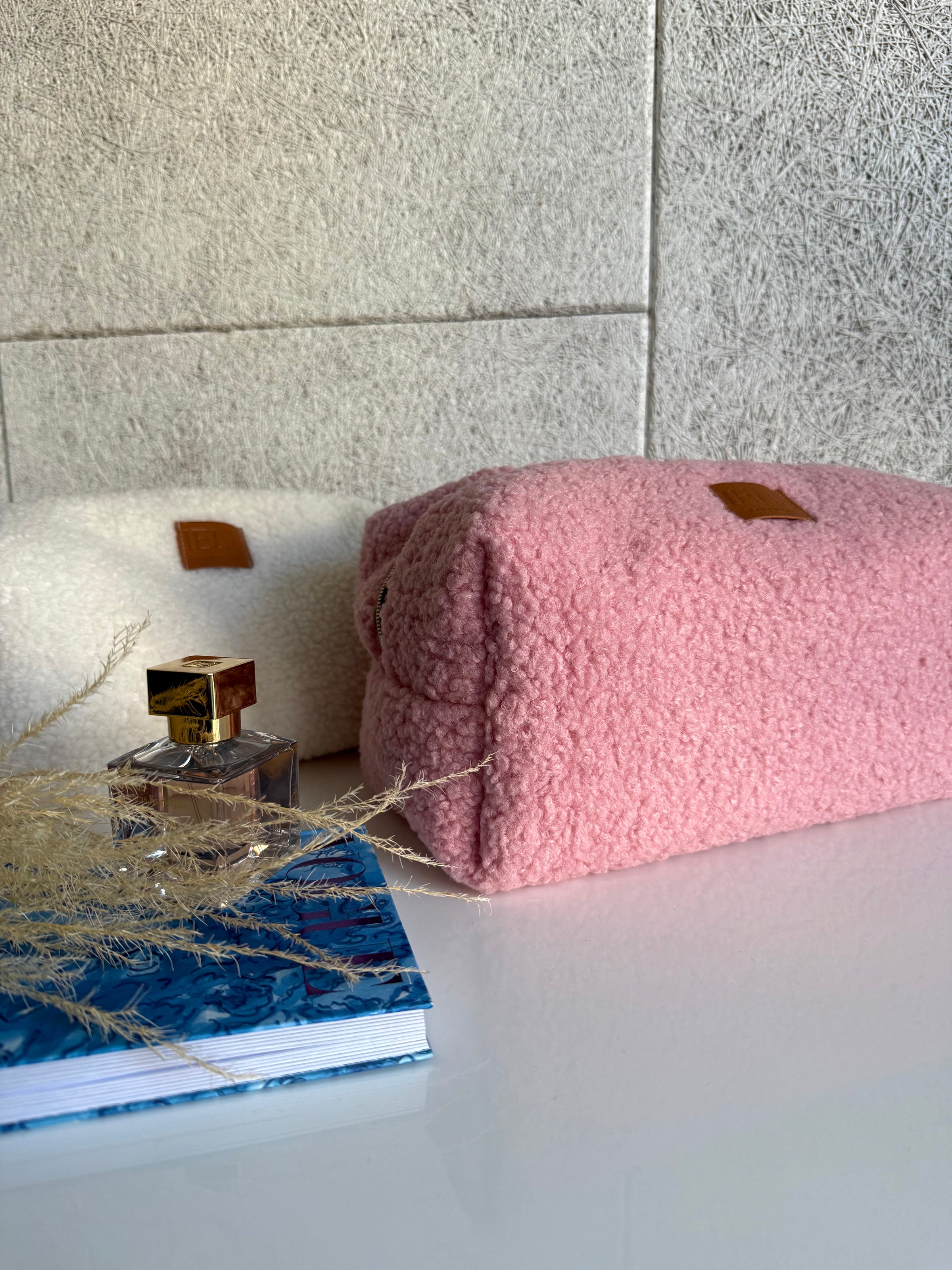 Rankų darbo kosmetinė pagaminta iš itin minkšto bei jaukaus Teddy audinio. Kosmetinė yra itin talpi, pailgos formos, todėl į ją puikiai tilps plaukų formavimo prietaisai, pilno dydžio priemonės (šampūnai, kaukės ir kt). Puikus pasirinkimas kasdienai, bei kelionėms.